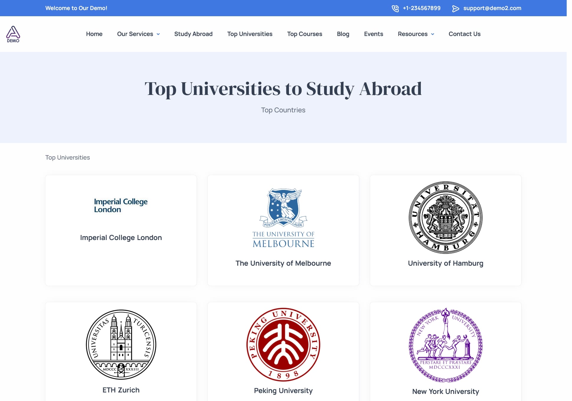 Free Counselling form, Call Back form & Pop-up window to collect student info.