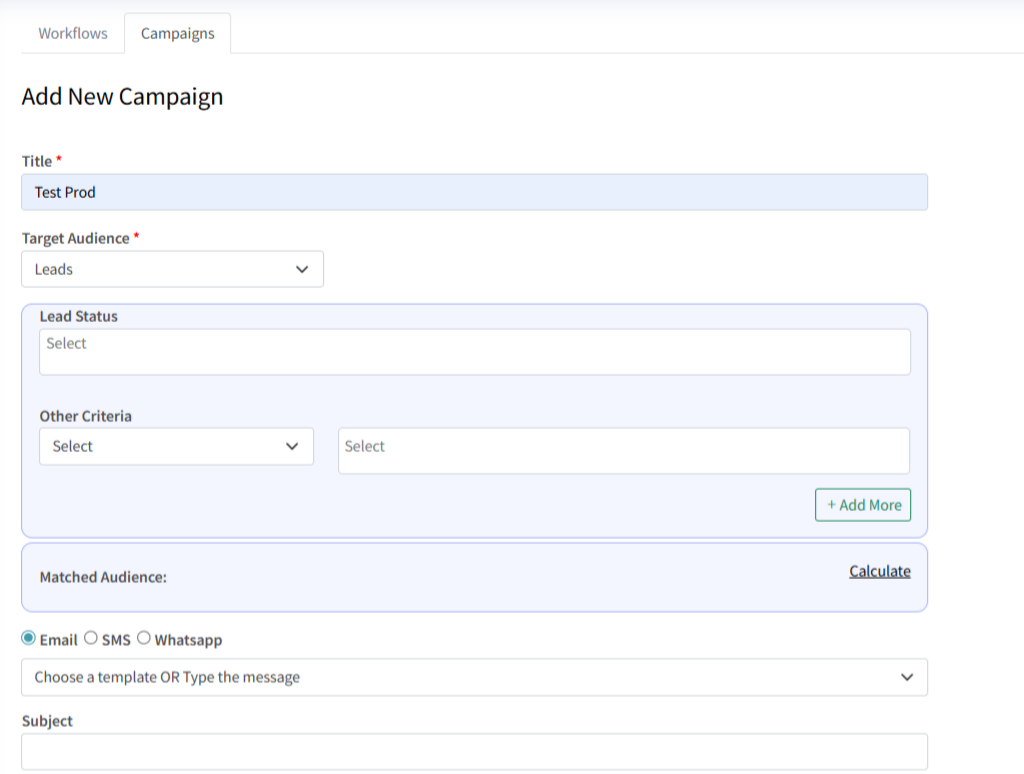 Enter a Campaign Title and select the Target Audience (e.g., leads, agents).