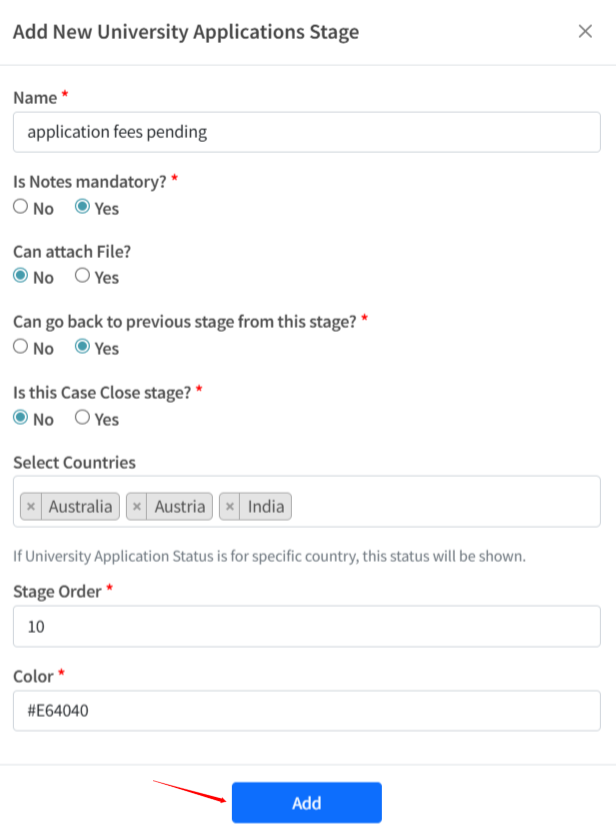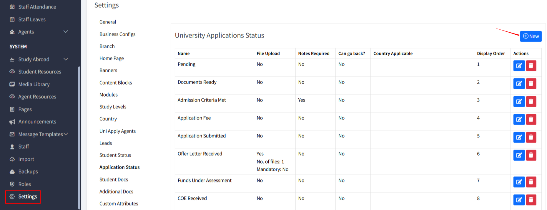 In EduCtrl CRM, each university application goes through a series of statuses or milestones—such as: