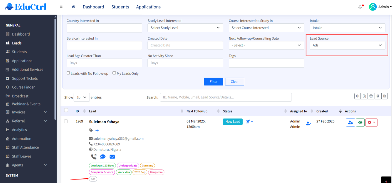 Learn how to capture, review, and manage leads from Facebook Lead Ads within EduCtrl CRM for streamlined follow-up and improved conversion rates.