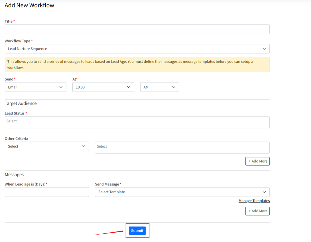 - Enter a Title for your workflow, such as “Cold Lead Nurture Sequence.”